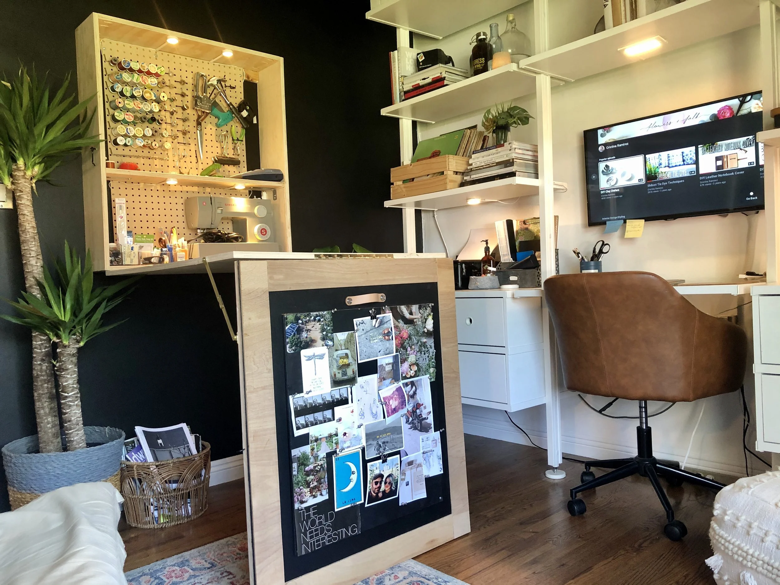 Finally, I sanded everything, added trim, and painted it so the table looked like a natural part of the room when folded up.